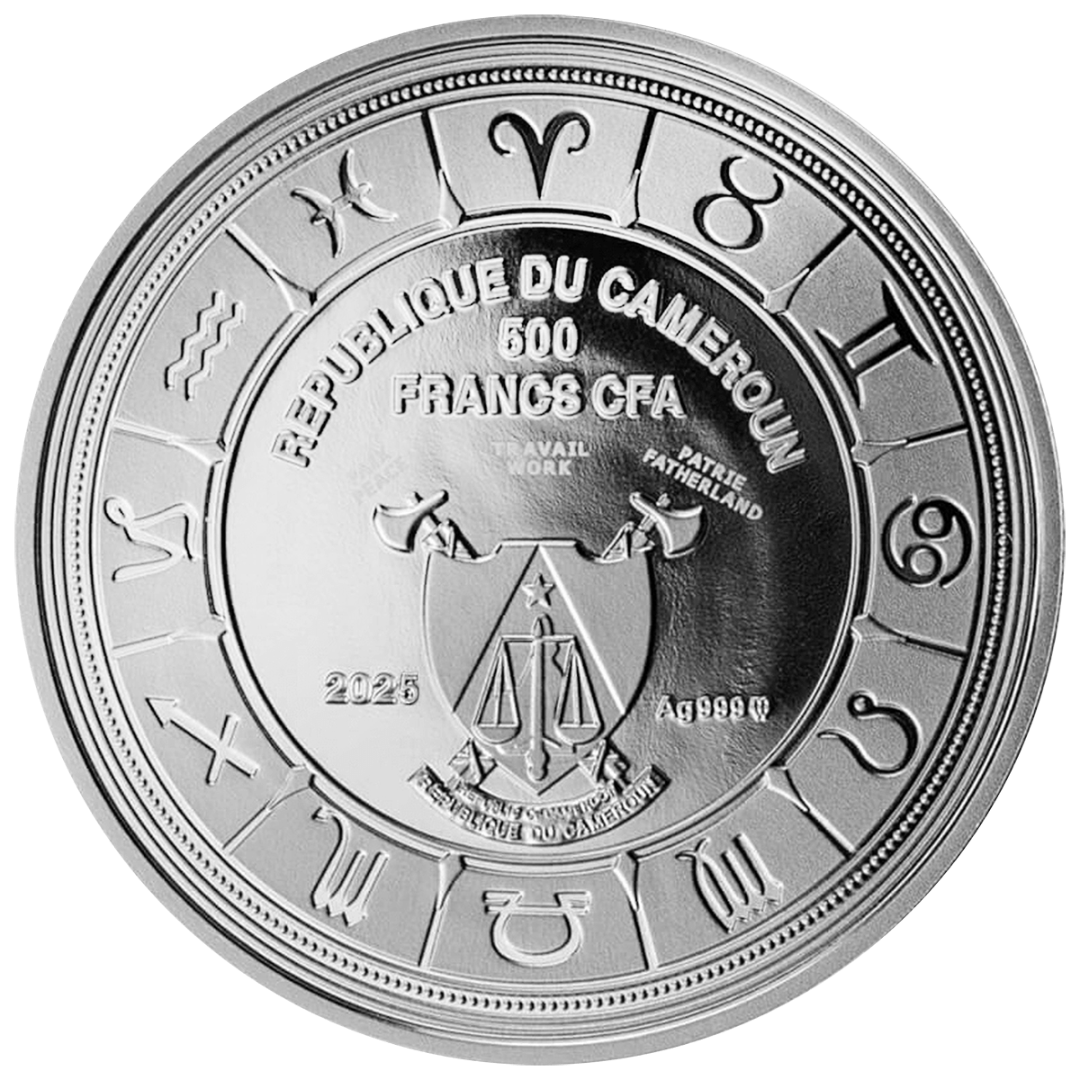 Kamerun: Silber-Sammlermünze Tierkreiszeichen. Skorpion 2025 (Anhänger), polierte Platte, koloriert, 10 g reines Silber (0,999)